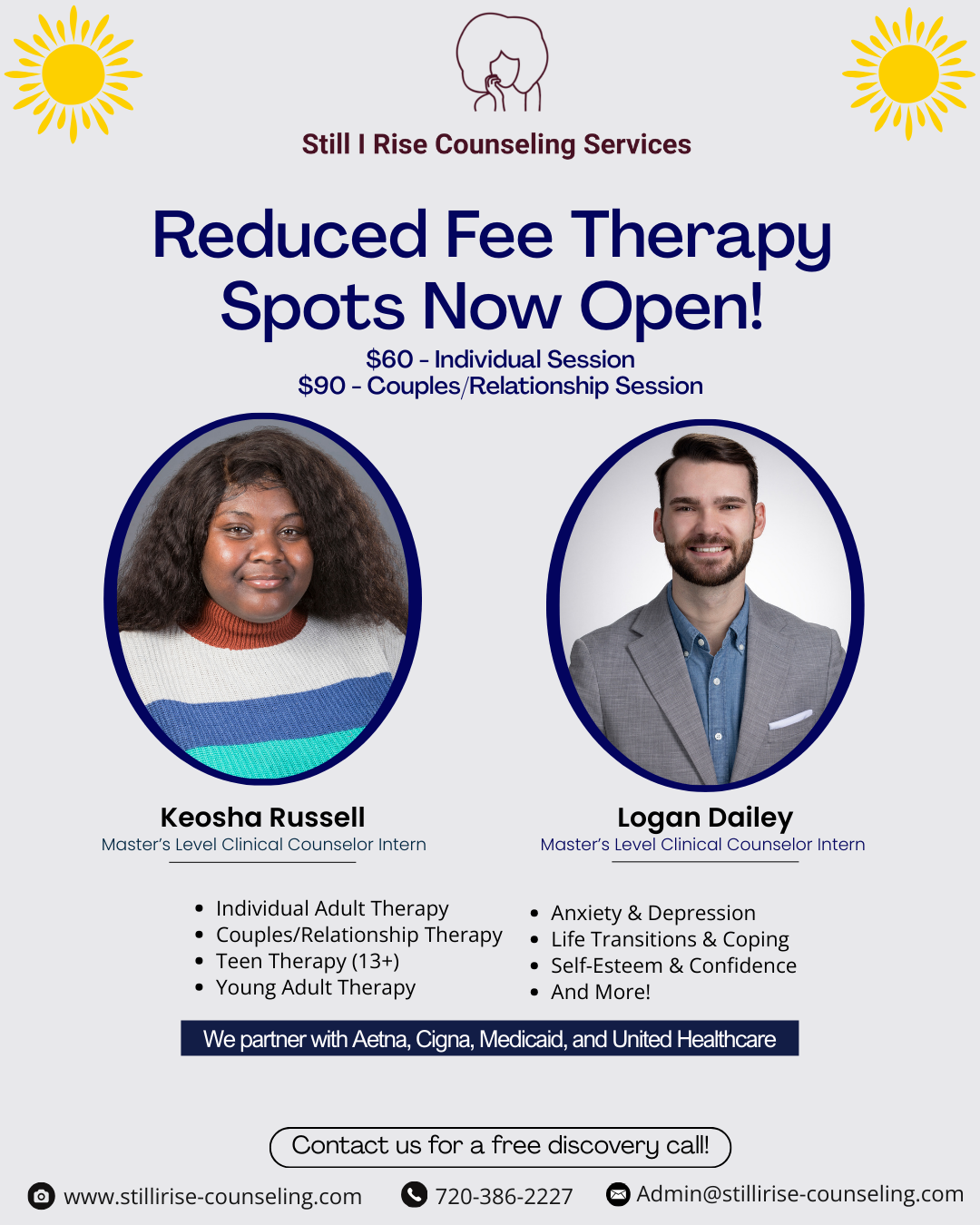 All other insurance plans are considered out-of-network, including Rocky Mountain Health Plan (Medicaid). However, Still I Rise Counseling Services will provide a Superbill for possible insurance reimbursement.