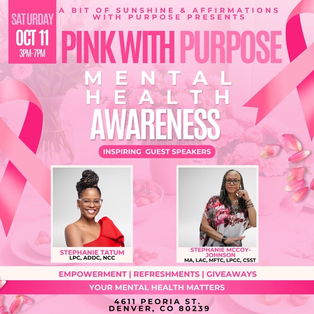 Our Founder, Stephanie Tatum, has been invited to speak at Pink with Purpose, a beautiful event dedicated to Breast Cancer and Mental Health Awareness, hosted by A Bit of Sunshine and Affirmations with Purpose. 💗