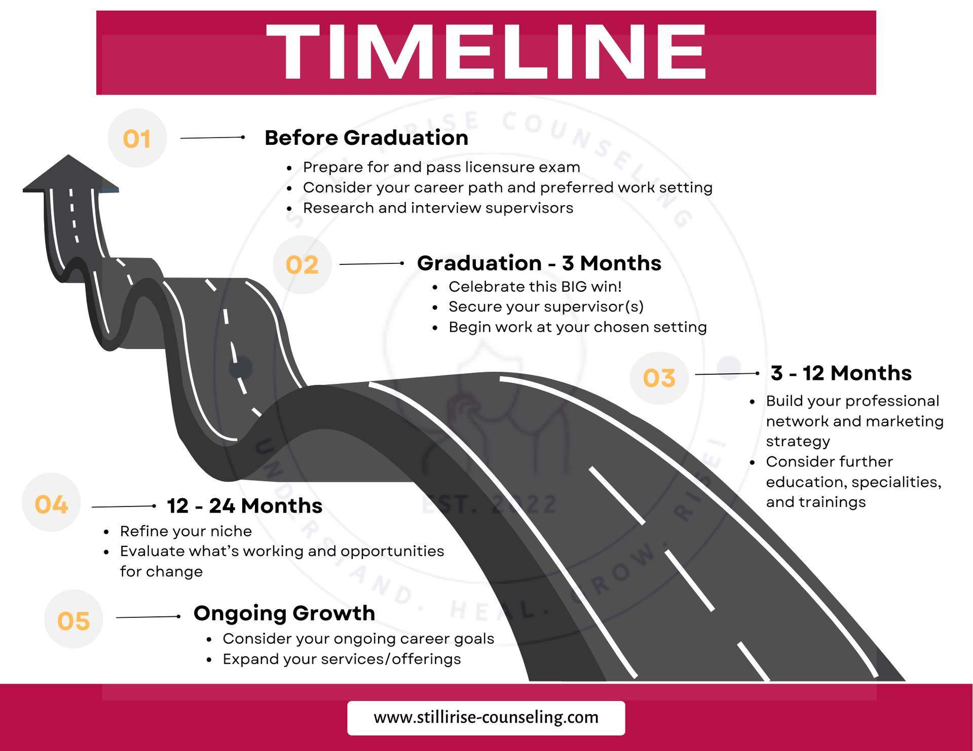 Whether you are considering agency work, group practice, or private practice, this timeline will guide you in preparing for the next steps.